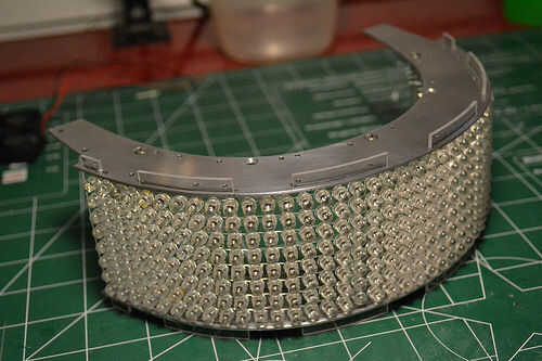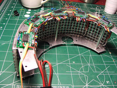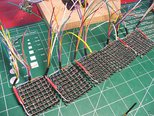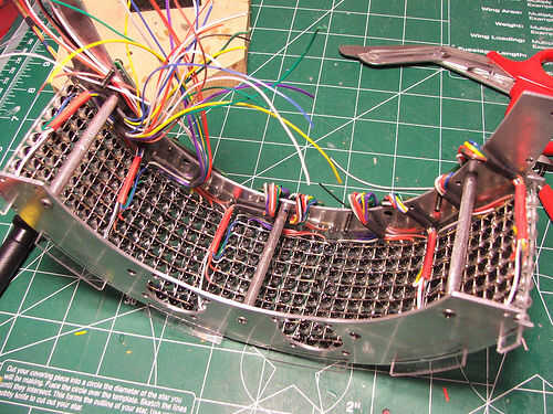Con todas las 40 columnas construidas, colocarlos en el subvisor en bloques de 8 y la soldadura de las conexiones restantes. Tenga cuidado de no gotear cualquier soldadura a través de las juntas o en el subvisor. La soldadura de estos donde montará en el subvisor, ya que cada sección tendrá una curva distinta a él. (foto 5)