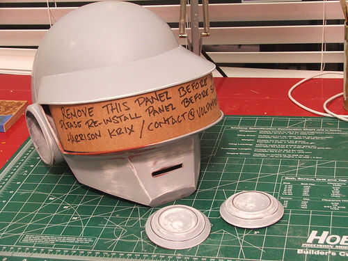 En este punto decidí pegar la base de mis discos de la oreja en su lugar. Después de hablar con mi tienda de cromo, dijeron que tiene la forma de "plato" exterior de las orejas separadas para el proceso de cromado permitiría un mejor acabado, así que los que quedaron sueltas - hablan con su tienda para ver qué funciona mejor, preferirán el casco con orejas de no sobre, en cuyo caso necesitará encontrar una manera tienen estos extraíble y celebrada en con tornillos en su lugar.