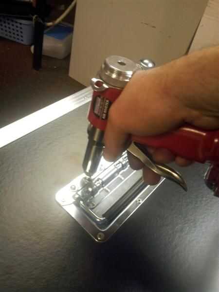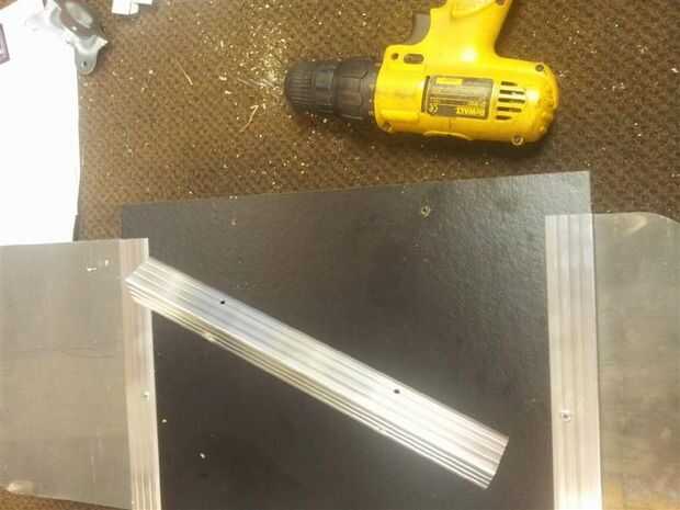 Las instrucciones son muy claras. Todas las partes metálicas se pretaladran, así que todo lo que tienes que hacer es alinear los carriles con los paneles, taladro, luego remache. Tienes que tener mucho cuidado para asegurarse de que los paneles estén ajustados uno contra el otro antes de perforar. Su una cosa una sola vez.