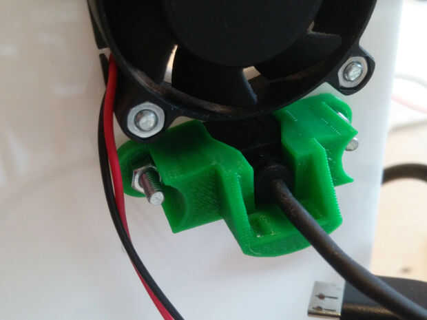 Coloque el ventilador en la parte trasera con cuatro M3x14mm tornillos y tuercas.