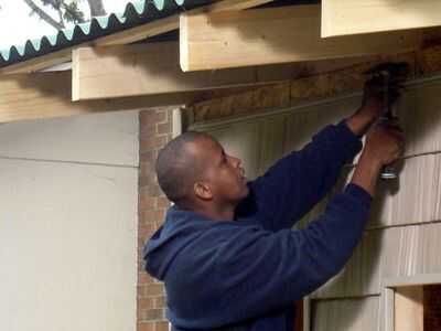 Una vez que el techo es completado, cortar los agujeros para las ventanas y cajas de almacenamiento empotrado. Utilice una sierra alternativa para cortar a través el OSB, asegúrese de que la corte entre los postes. Coloque el revestimiento al cobertizo exterior siguiendo las instrucciones del fabricante de vinilo. Empezar en las esquinas con piezas decorativas y su forma de trabajo hacia el centro, asegurar el revestimiento de OSB con clavos