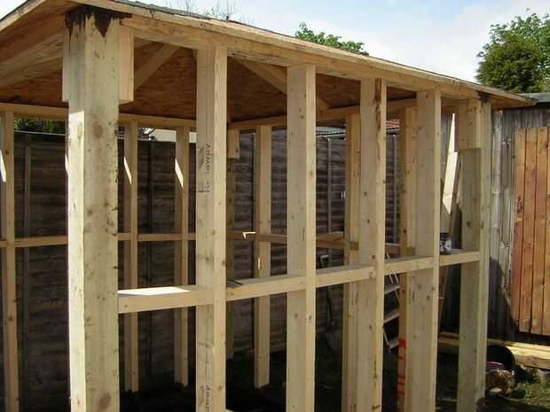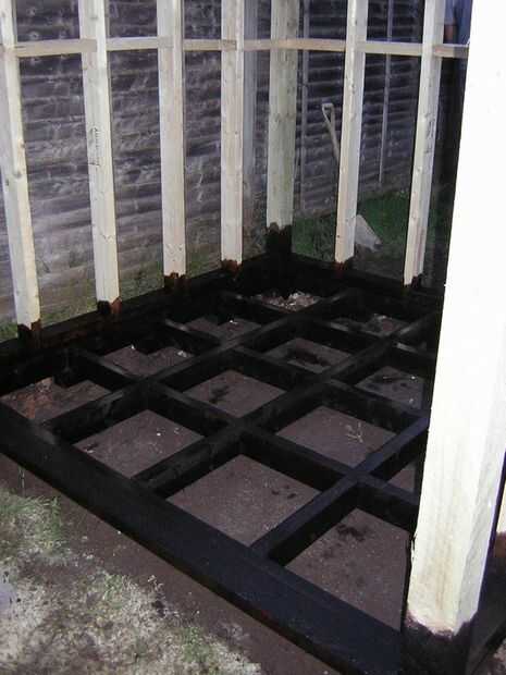 Se puede ver que el cuadrado de cuatro pulgadas poste de la cerca es bien concreta en la tierra, pero también bien fija al suelo y paredes, esto hace que para una unión fuerte agradable - y en última instancia, una fuerte vertiente. Como parte de esta madera estará en contacto con la tierra, le di un buen remojo en conservante de la madera a lo último - es ya tanalised, pero me parece un poco más conservante no hace daño!!