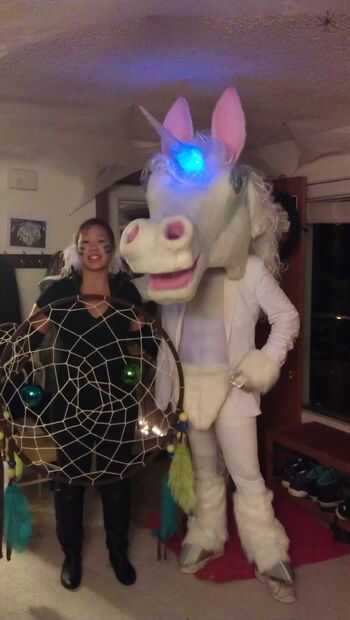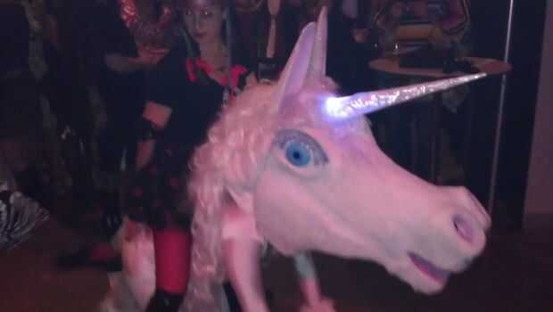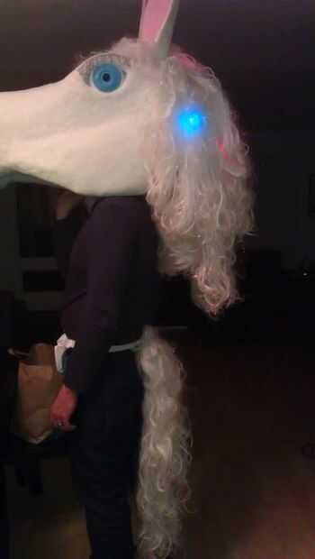 Se puede ver en el vídeo que montado LED y luces de fibra óptica a lo largo de la melena y en la bocina para dar el efecto de arco iris mágico. Si lo hace la fibra óptica extensiones, usted querrá cortar en longitudes de capas múltiples o sólo tendrá una línea dura de color al final.