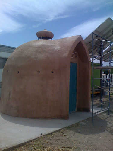 En el momento de esta presentación que la cúpula ha sido terminada y funcionando a todo nuestro equipo solar PV durante casi un año. Estamos muy contentos con el rendimiento térmico de la cúpula, así como la apariencia estética. Cuesta unos $10 por pie cuadrado de materia prima poner juntos. Desde entonces hemos comenzado una cúpula de diámetro de 20' (~ 320 pies cuadrados). Ha sido muy fácil de montar aunque extremadamente tiempo intensivo. Planeamos hacer tres bóvedas más. No dude en hacer algunas sugerencias sobre cómo podemos mejorar, agilizar, reducir costos, etc.