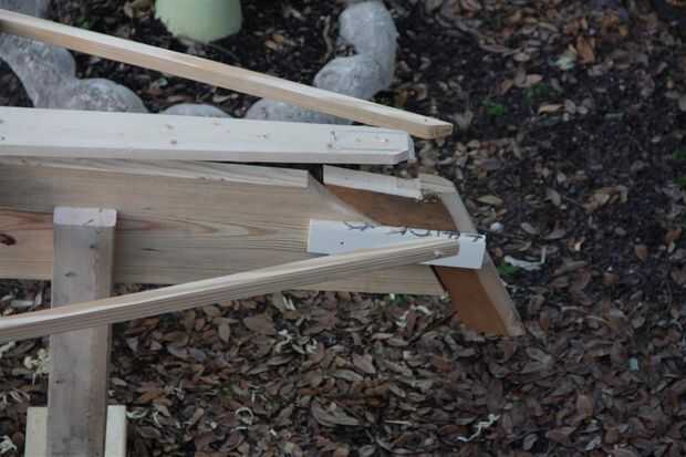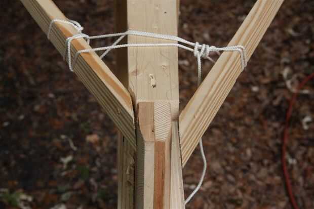 OK. La parte fácil es sobre. Ahora empezamos a construir un barco. Usé el tendedero para sacar los lomos para poder marcarlos y cortar los extremos para encajar contra los pedazos de tallo. Hacer este poco en un momento. Sólo no tire en uno a la vez o nada quede alineado derecha. Así que até un extremo justo lo suficiente como para evitar separarse mientras que usa el tendedero para tirar al otro lado.