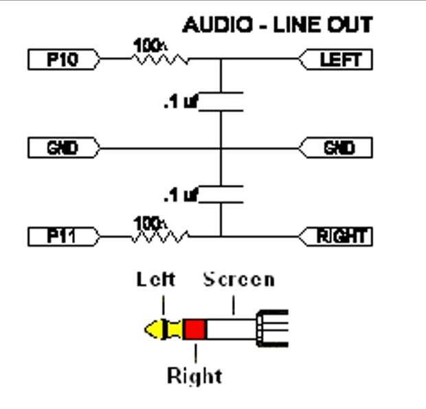Pines 10 y 11 de la viruta de procesador de hélice se utilizan para hacer las señales de audio.