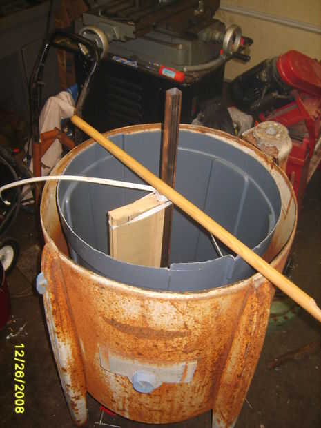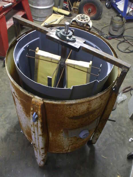Usted tendrá que localizar un bote de basura de plástico que es lo suficientemente pequeño como para caber dentro de su casco de la lavadora, pero grande bastante para acomodar el diámetro total de su sistema de eje (incluyendo la anchura de su eje, los marcos de miel y el borde externo de las 'cestas' usado para sostener los marcos). Pasé un par de viajes a las tiendas un par, antes de que la basura puede que mi casco. Siempre puede elegir una papelera que es demasiado alto (lo hice), siempre y cuando cumpla con sus requerimientos en términos de diámetro. Entonces... simplemente se puede recortar la parte superior que es el 'excesiva'. Por cierto... aquí es un Consejo... cuando el chico en Lowe le pregunta por qué estás siendo tan meticuloso en la selección de basura puede... ahorrar tiempo y dejar de lado que está construyendo un extractor de la miel.