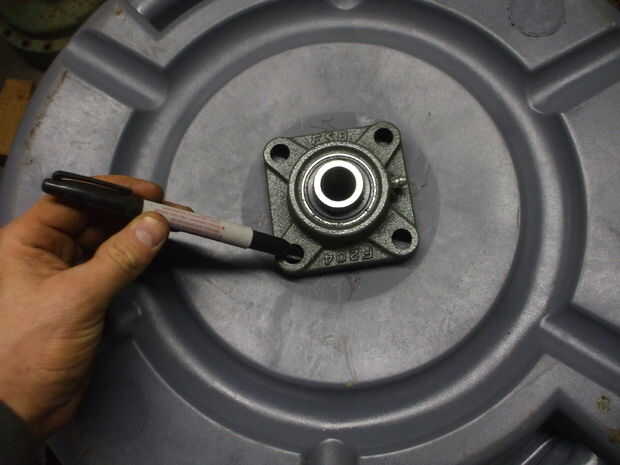 A continuación, usted necesitará preparar el revestimiento para recibir los pernos de montaje, ya que va a instalar su bloque del cojinete dentro de su línea en el ajuste final y sus tornillos y el eje pasará por el revestimiento, en el soporte inferior.