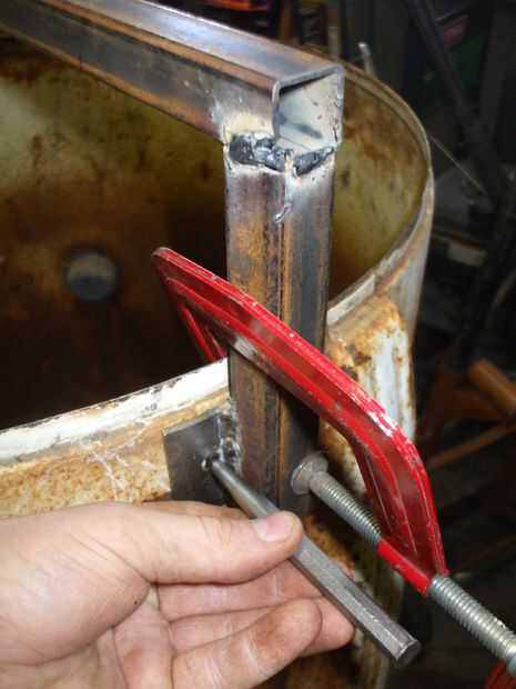Ahora, utilizando un cuadrado y las abrazaderas en C, soldadura y diseño de los elementos verticales del 6" dos a su largo travesaño.
