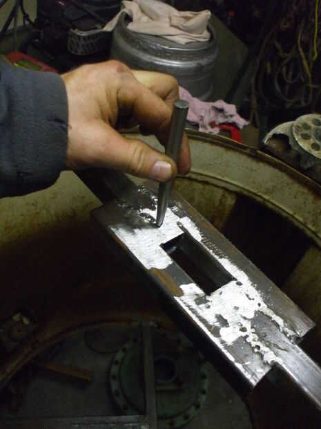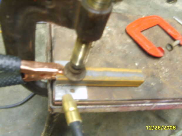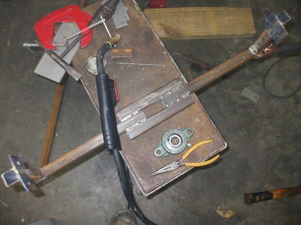 Para acomodar el paso a través del eje de eje de centro (y evitar hacer a un offset travesaño en la parte superior, como en la parte inferior), usted no necesitará 'costra' a ambos lados de su nuevo miembro cruzado. Para hacer esto, simplemente corte dos tramos adicionales de tubería cuadrada de 1", cerca de 8" de largo. La primera (como se muestra en fotos más abajo) a un lado de su travesaño, en el punto central de la soldadura. Después de realizar esta soldadura, recorte 2" más o menos original del miembro cruzado, para permitir que el eje pase a través. Ahora soldar (como se muestra en las fotos abajo) su segundo 8" pieza de tubería al otro lado de su travesaño.