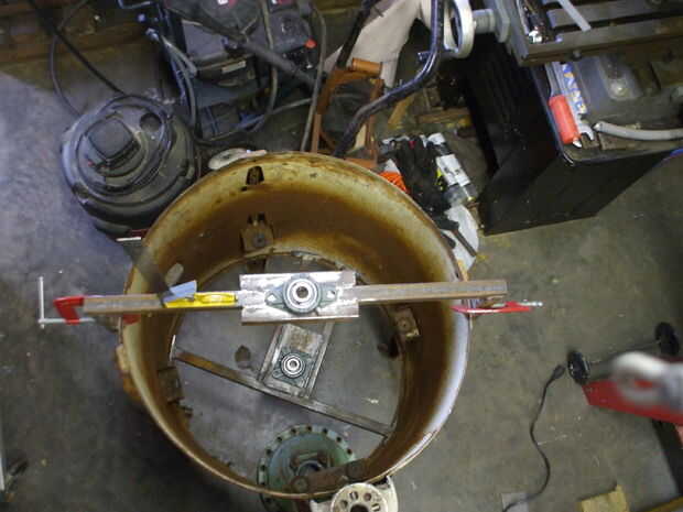 Usando un nivel y las abrazaderas en C (demostradas) Fije el conjunto sólo han construido en el casco superior en posición y taladro 'agujeros' usando las placas de montaje una vez más como guías. Instale los cuatro tornillos a través del soporte superior y el casco, otra vez, usando las contrachapas hecha y apretar apretado para un montaje de prueba.