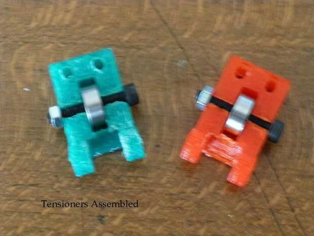 Ponga el cojinete en el cuerpo del tensor y deslice el perno a través. Asegúrela con una tuerca. Refiera al cuadro titulado "tensores montados".