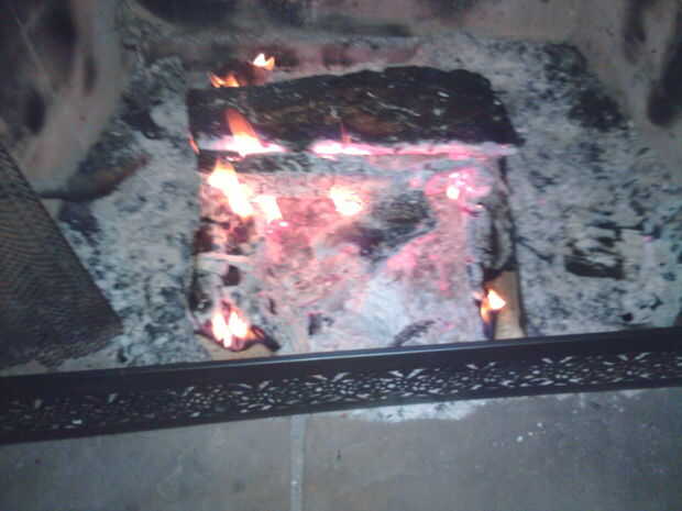 Finalmente, los registros superiores quemará a través de, caer en el centro y seguir ardiendo hasta que están completamente consumidos. Los registros más bajos, sin embargo, queman mucho más lentamente, así que si usted tiene cualquier pieza sobrante puede Agregar en la superficie y el fuego seguirá yendo. Aquí se puede ver que dos de los tres troncos principales se han quemado completamente, pero hay todavía mucho calor de los carbones que troncos colocados en la parte superior se pone en marcha casi inmediatamente.