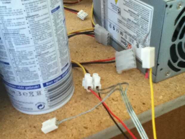 6 / ahora sobre alimentación de los ventiladores. Esto es un poco más difícil luego anteriores pasos porque no se puede accionar la alimentación. Normalmente sólo se ejecutará si pulsas el botón de inicio de tu pc. Pero no es construir en un pc, así que tienes que hacer primero algunos mods a la fuente. Aquí hay un enlace a un instructable seguí: