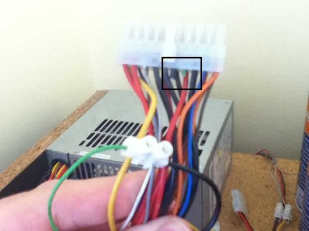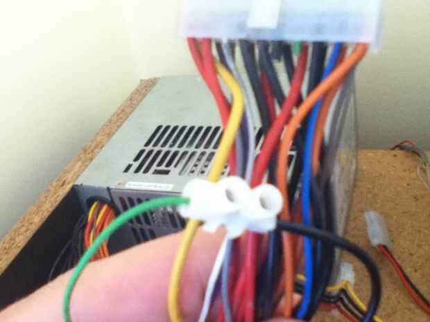 Versión corta (pero leer la versión larga en primer lugar por favor y asegúrese de saber lo que está haciendo): Conecte el cable verde con uno negro. Lo hice con una tira terminal. (descargo de responsabilidad: Esto funcionó para mi alimentación. No es una garantía que funciona por la tuya. Así que tenga cuidado: se trabaja con voltajes altos.)