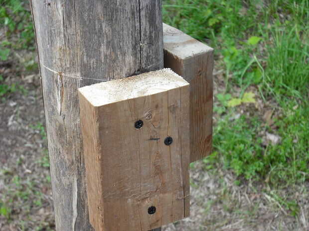 -Utilizando un nivel de asegurarse de que todas las ocho piezas se atornillan en el nivel de los mensajes así que no es el proyecto terminado en una pendiente. Tres o cuatro tornillos deben poner en cada pieza de soporte.