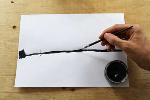 La forma más básica de un potenciómetro o resistencia variable en este caso, es un pedazo largo de material conductor que puede ser golpeado ligeramente apagado con un cursor en diferentes longitudes. En nuestro caso el material es pintura desnudo y nuestro slider es simplemente un pedazo largo de alambre. Dependiendo de qué longitud desea Puntee fuera de la línea de pintado puede variar la resistencia en el potenciómetro. Cuanto más tiempo la pieza pintada 'toca de' mayor será la resistencia.