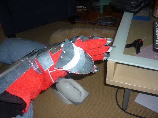 Pulgar es muy similar a los dedos que se dobla al revés, y usted desea colocar sus placas en consecuencia. Asegúrese de que sus placas no interfieran con su comprensión. Es genial tener un guante de pinchos de miedo, pero es mucho más fresco para poder sostener una copa en la mano sin cortar la Copa de espuma de poliestireno a pedazos, porque tienes picos y cuchillas sobresale el pulgar.