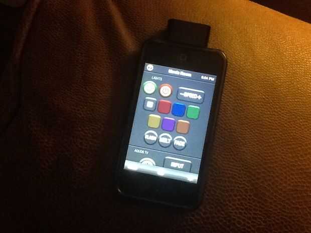 Para el sistema remoto que compré un usado iPod touch y un emisor de control remoto de L5. El L5 se convierte un iPod o iPhone en un mando a distancia programable que permite controlar cualquier dispositivo. Yo era incluso capaz de controlar la iluminación del LED en el techo.