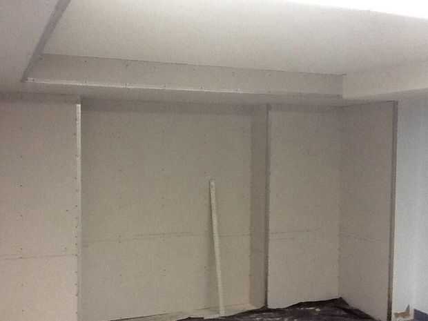 Habitación era originalmente 11,5 ' X 13' con un closet y ventana de un sótano. Lo primero que decidí hacer fue eliminar el armario y ampliar la sala que la sala 11,5 ' X 16' 3'. Esto permite para una mejor acústica y asegúrese de tener dos filas de sillones reclinables un mejor ajuste. También hubo un problema con un conducto en la sala que no se podía mover. Decidí que la sala tendría una mirada más completa, si la parte baja del techo, que cubre el conducto, se llevó a todo el camino alrededor de la habitación, algo así como un atrio. Mientras esto se hacía corrí subió el cableado de los altavoces antes de la roca de la hoja. Después de extender la sala, una sección de la pared extendida fue empotrada más todavía para dar cabida a 70" TV y una plataforma para albergar el sistema de sonido envolvente y reproductor de DVD. Los agujeros fueron perforados a través de la pared con una sierra del agujero para los cables y cables de alimentación.