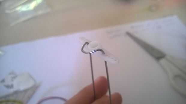 En primer lugar, doblar un alambre de acero exactamente en el punto central (ver segunda foto), de esta manera podrá crear dos piernas. A continuación, deberás poner las dos patas de acero a través de uno de los rotadores (ver tercera foto), la parte superior de la curva a la izquierda y las piernas a la derecha. Esta manera las piernas fija lugar y capaz de girar (véase cuadro tercero y cuarto).