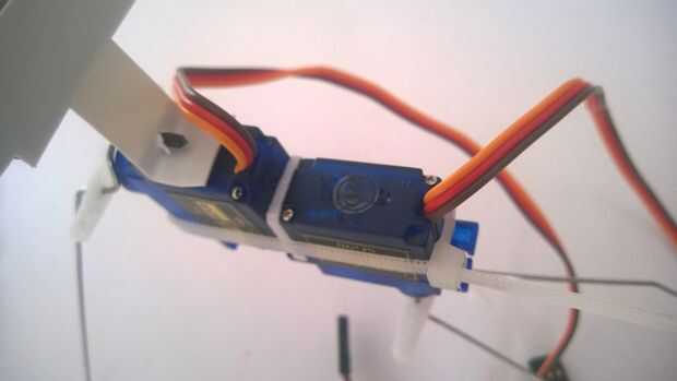 Conecte el cuello al robot, conectando al servo delantero con un tornillo (sexta imagen).