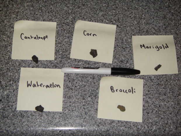 Utilice sus post-its para etiquetar el tipo de planta plantada en cada taza.