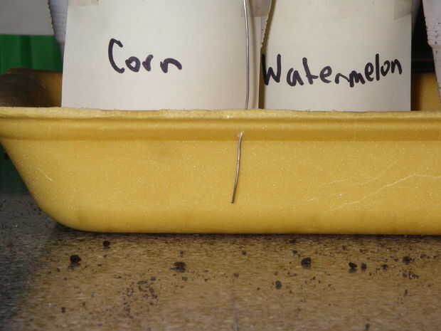 Pegar el alambre a través del lado de la bandeja de espuma de poliestireno. Repetir este proceso para los otros 2 cables y por el otro lado.