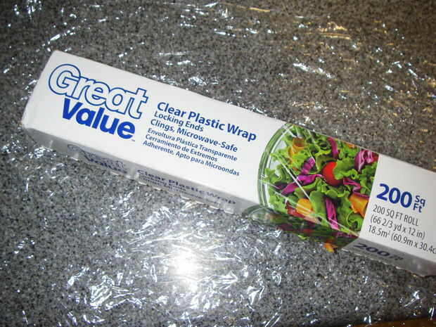 Necesita una pieza de envoltura de plástico que puede poner en el arco y tiene cerca de 1 pulgada colgando a cada lado (ver imagen 2). Si quieres que sea más durable, doble puede capa la envoltura plástica.