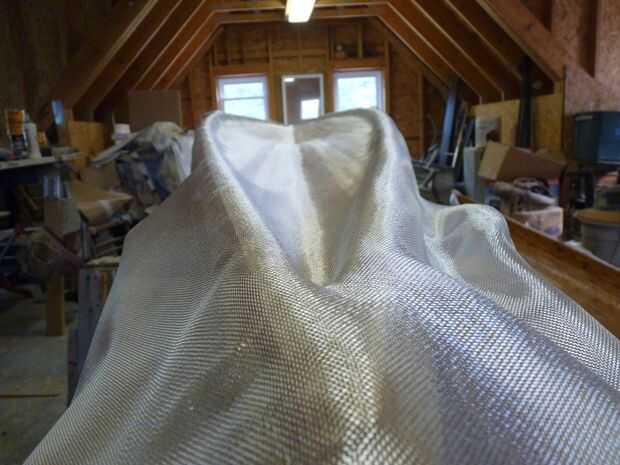 Como en los pasos anteriores el paño se pone y se alisa con un cepillo. Usé 4 onzas vidrio para este paso y 2 capas de epoxi.