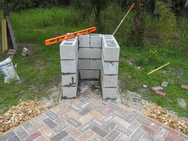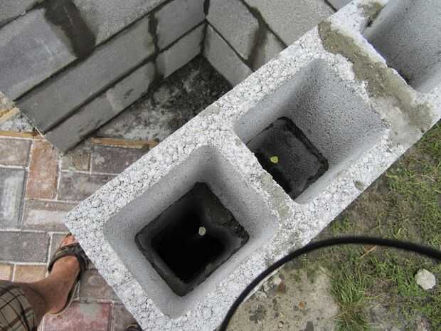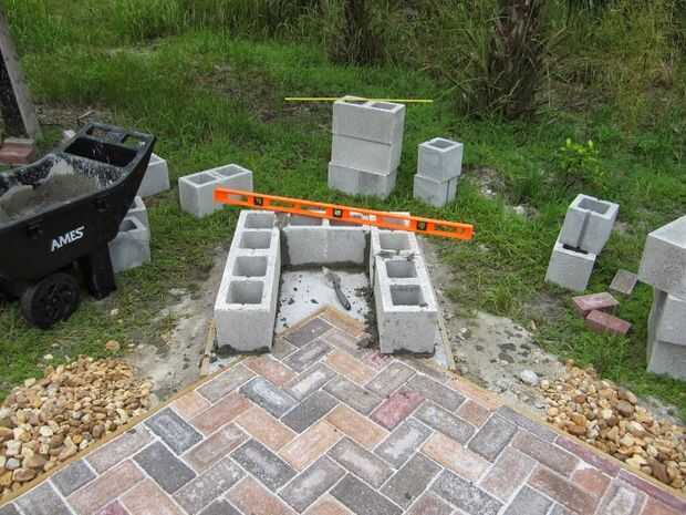 Use el nivel cuando las paredes del edificio. La necesidad hace base de horno reforzadas con metal bares pie verticalmente como en la imagen - y dentro de los bloques de cemento. Algunas personas se llenan cada hueco y otros sólo cada segundo uno.