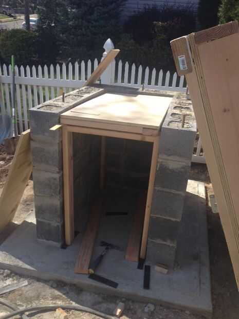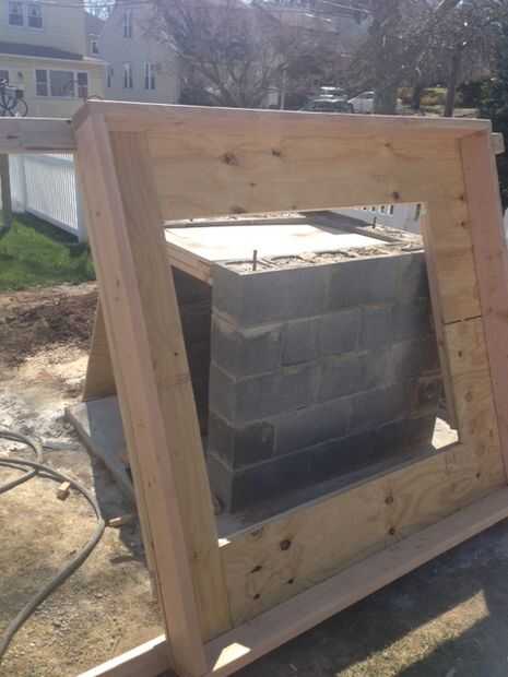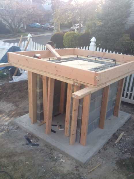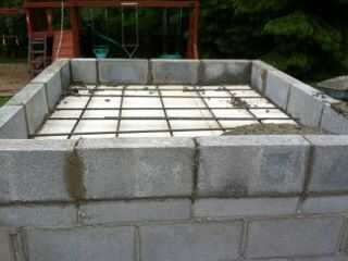OK, si vas al modo tradicional se necesita construir su marco de madera primero. Será el anfitrión de la losa de cemento para su horno. Fotos a contar la historia mejor que las palabras. Usar 2x6s en los lados. El marco es posteriormente desmantelado y retirado (obviamente solo los lados, no serás capaz de eliminar las piezas de la parte inferior), así que no te preocupes una combinación de una leña horno y un marco de madera)). Usted también necesitará cubrir toda la zona interior de la base (entre las paredes de bloques de hormigón). Usted puede hacer esto con madera contrachapada. El truco es que esta pieza de madera contrachapada debe apoyarse muy bien de la tierra - o de lo contrario caerá cuando usted vierte cemento en él. Usted puede apoyar con bloques de cemento (por supuesto que más tarde saque).
