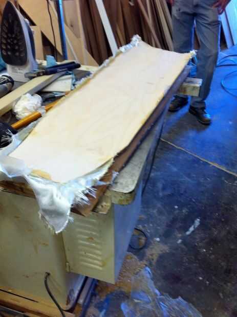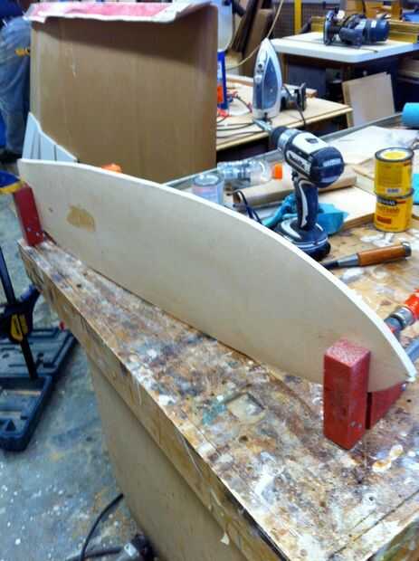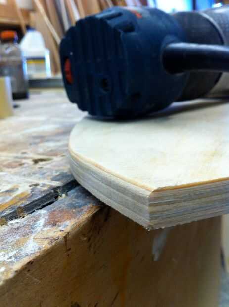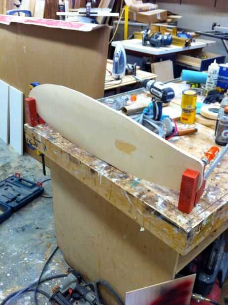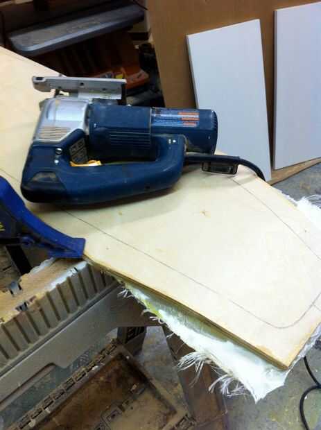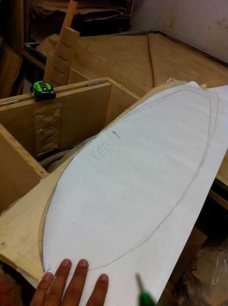 Cuando el espacio en blanco el formulario trazó la pauta para la forma de la Junta en la parte inferior de la chapa. Lo hice cortando a lo largo de la mitad de mi patrón de papel original y trazado a un lado de la Junta. Lo voltea y remontar la otra mitad para crear una forma simétrica. Había cortado con una sierra de calar. No hay mejor forma de cortarlo hacia fuera. Luego me trasladé a la lijadora de correa de mano para suavizar la curva. Una lijadora normal trabajar y optimizar para el cinturón. Cada vez que usted está cortando o lija, fibra de vidrio un respirador es muy importante. Después de conseguir la curva lisa, encamina un pequeño redondo-sobre en los bordes (no necesarios) y me fui sobre todo con grano 150 en la lijadora orbital.