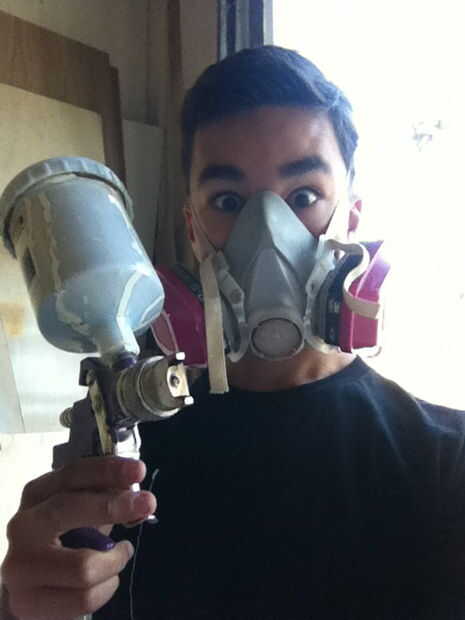 Después de la pintura en aerosol secado, mi plan era para limpiar la Mancha alrededor de las líneas, pero Doc me convenció para rociar la mancha en su lugar, ya que estaba preocupado de que el movimiento de limpieza y el alcohol en la mancha se lío con el trabajo de pintura. Lo que un químico, le creía. Nosotros generalmente spray utilizando pistolas de pulverización de flujo de gravedad conectados al compresor de aire. Si usted decide limpiar la mancha, sólo tenga cuidado. Ya que la mancha se ha rociado el grano no pop es tan mucho, pero puedo vivir con él.