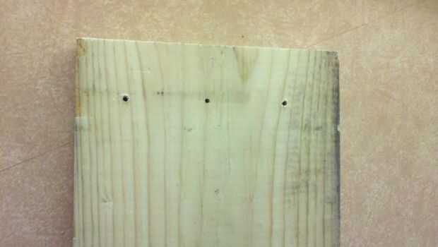 A continuación, marque los orificios piloto en la parte inferior de la sección de 2 pies de madera para unir las otras dos piezas. Lo hice colocando las piezas cerca de 1 pulgada en el borde y marcar 3 agujeros en línea estrecho. La razón por la que coloqué en el borde era así que lo hice no spliting de riesgo el borde de la madera con el uso.