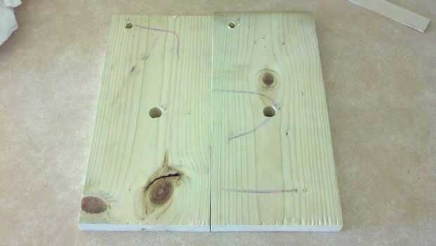 Comience colocando las secciones de dos 1 pies uno encima del otro, alineados y taladre los orificios de 3/8" y 5/8" a través de ambas piezas de madera al mismo tiempo. Esto les ayudará a alinear más adelante; Usted también tendrá que hacer menos aburrido de los agujeros para que las varillas de ajuste sin problemas.