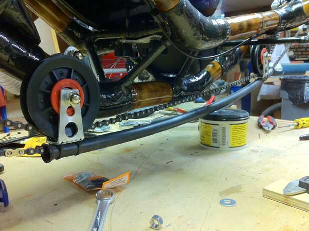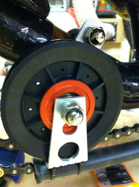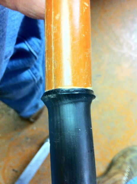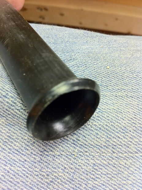 El tubo de polietileno negro compró a Lowe y es a línea de agua. Fue capaz de comprar una sección de 3' y flare los extremos con una pistola de calor. Hice una herramienta de madera de un taco de lijar el extremo con mi tambor de lijar Dremel (Foto 8). Funcionó muy bien y la tubería de polietileno es fácil de calor y de la llamarada. La llamarada ayudará a la diapositiva de la cadena y reducir un poco el ruido.