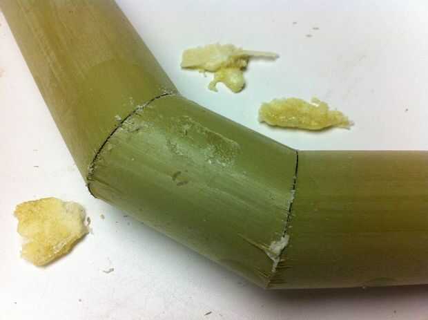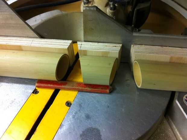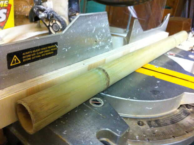 Al realizar los cortes de inglete, mueva la hoja de sierra y no el bambú (Foto 2). Si voltear o rotar el bambú, las piezas no serán orientada a la misma. Si haces tus cortes a inglete de esta manera, usted simplemente alinee las piezas de madera entre sí y el bambú partidos perfectamente (Foto 3).