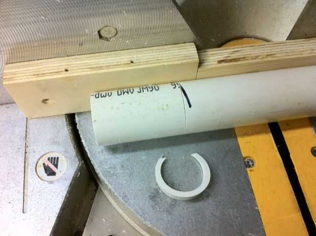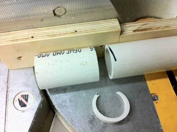 Para que mientras que usted está cortando un pedazo de PVC que pierda cortar un extremo mal o es un poco corto; en lugar de empezar por aquí es un pequeño truco. Sólo corte la Plaza final de error (Foto 3) y conseguir otro trocito rechoncho y un trozo de madera contrachapada como un espaciador. Loctite es un gran 2 paso plástico pegamento (foto 4) que rápidamente le dará un nuevo extremo (Fig 5). Utilice el "marcador" para cebar los extremos, esperar 60 segundos, aplicar pegamento y usted puede intentarlo. Esto realmente ayuda cuando intenta repetidamente conseguir la longitud adecuada o cuando tienes un extremo corregir y atornillar por el otro. Este truco ahorra mucho tiempo de recorte y también un montón de desperdicio PVC. Ya que nadie va a montar el modelo de PVC, no estamos preocupados por fuerza para que esto funciona muy bien.
