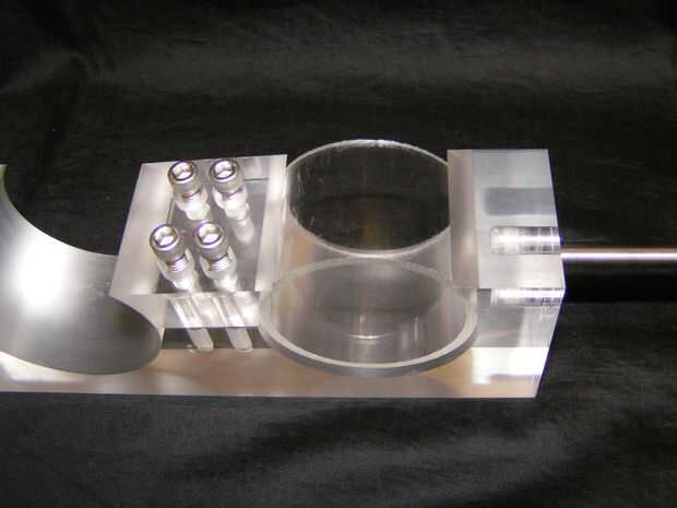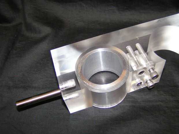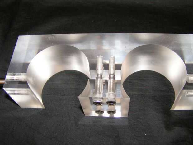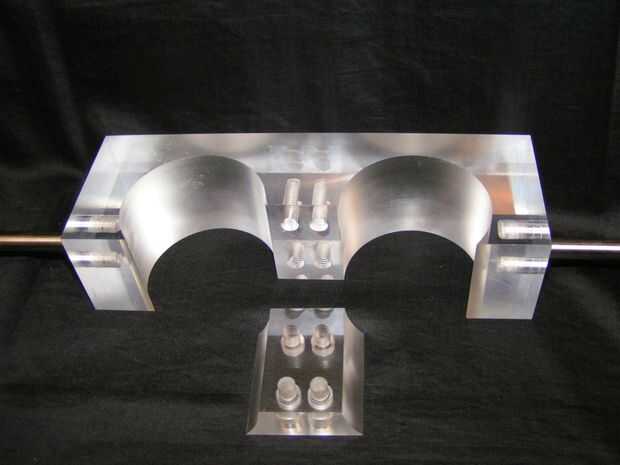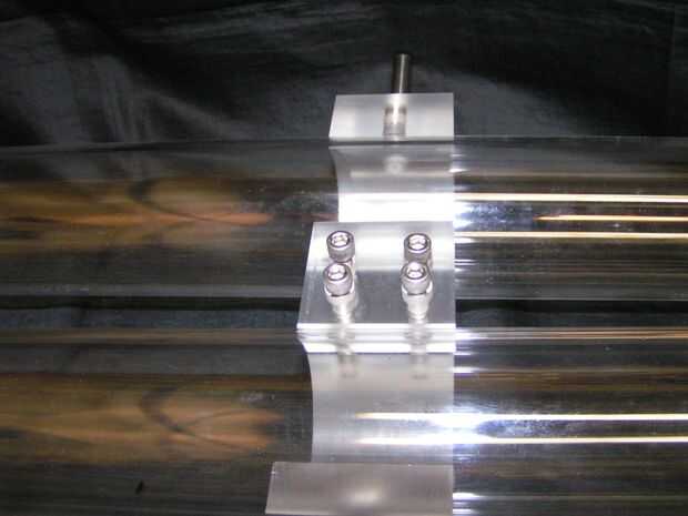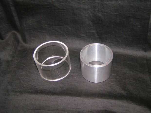 Antes de insertar los pasadores, corte dos pequeños tramos de tubo y gire dos donuts de aluminio para proporcionar la ayuda. Acrílico puede ser frágil y podría romperse si se aplica demasiada presión al empujar los pasadores de espiga.
