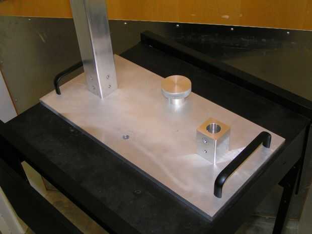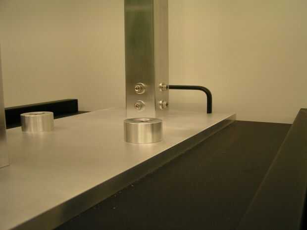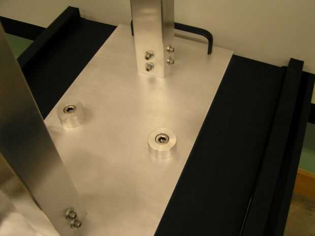 La placa base se fija en la tabla por dos de 1/2"-13 x 3 1/2" tornillos de cabeza hueca. Hay una pequeña pieza de aluminio con la misma ubicación de los orificios y el patrón de hilo por debajo de la parte superior del carro.