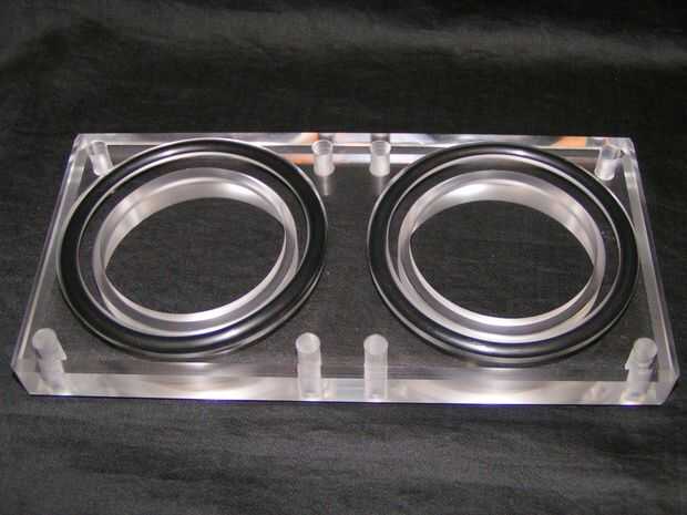 Los anillos son 2 7/8" ID x 3 1/4" OD x 3/16" ancho, McMaster-Carr Nº 9452 K 56. El agujero, cajeado y junta tórica ranuras fueron mecanizadas en un torno con una tirada de 4 quijadas. Para el corte de junta tórica surcos se puede compran herramientas de partida/ranurado o moler su propio de chapas de acero de la herramienta de alta velocidad. Tierra mi propia de un HSS 3/16" herramienta en blanco.