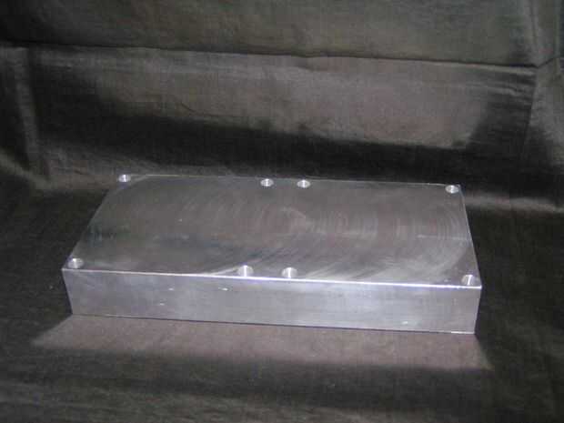 Una losa grande de aluminio para equilibrar el peso de las guarniciones de cobre amarillo en la parte inferior. No tiene el mejor acabado de la superficie pero sólo verás los lados cuando todo esté montado.