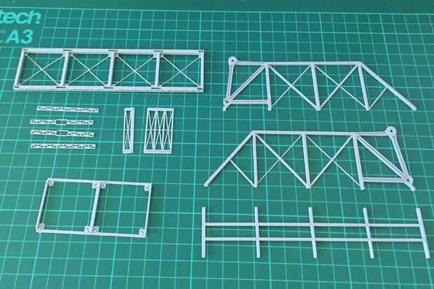 Longitudes de puentes pueden crearse con este kit, aunque proporciona solamente dos, uno de 96 pies en cinco secciones y una de 115 pies en seis secciones. El último es el más grande que mis impresoras pueden manejar (con una cama bastante grande) y la sección cinco debe encajar en muchas de las impresoras más pequeñas.