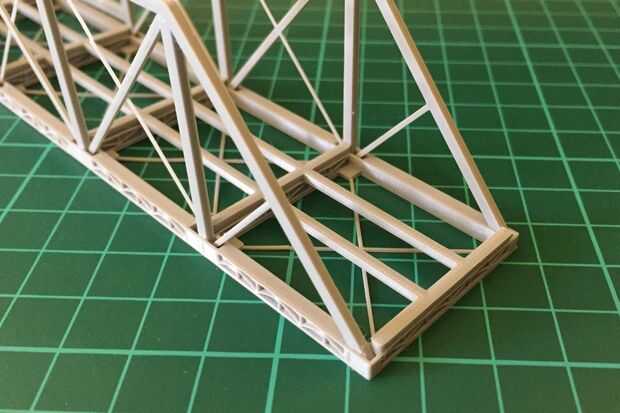 Este es un instructivo para la construcción de un puente de ferrocarril del braguero (de mi propio diseño) en escala N o (1: 160). Los archivos de modelo 3D pueden encontrarse en Thingiverse. Cabe señalar que este puente fue diseñado para demostrar l