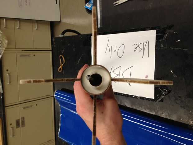 4.3. la unión entre el anillo centrador inferior y el tubo del cohete del pegamento.