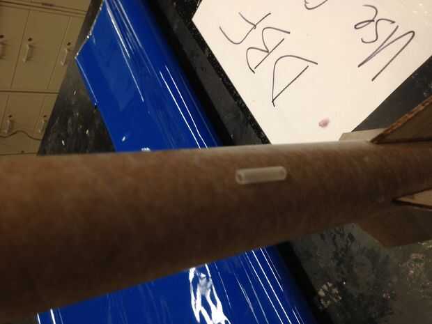 6.1. aplica un cordón de pegamento de la marca 4" hacia la parte superior del tubo del cuerpo la longitud de la zapata del lanzamiento.