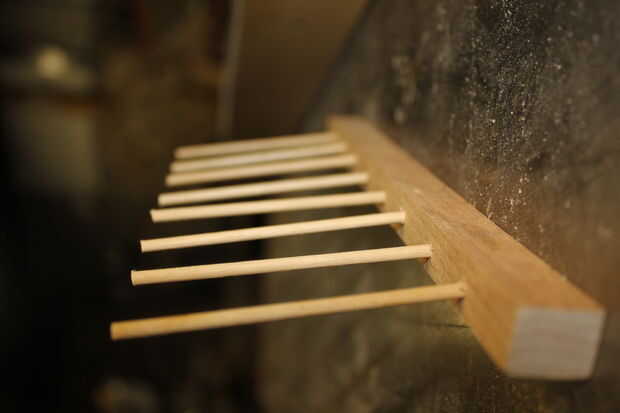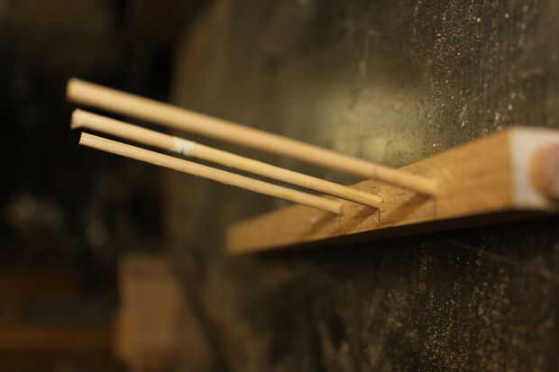 4. Perfore de 8 1/8 en los agujeros en cada ala y meter 3 en varillas largas en los