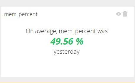 Ideas también puede proporcionar más información acerca de sus datos. Para ver cuánta memoria está usando un servicio en un dispositivo, podemos determinar el porcentaje promedio de uso de la memoria del día anterior. La figura siguiente muestra que en promedio 49.56% de la memoria en uso ayer.