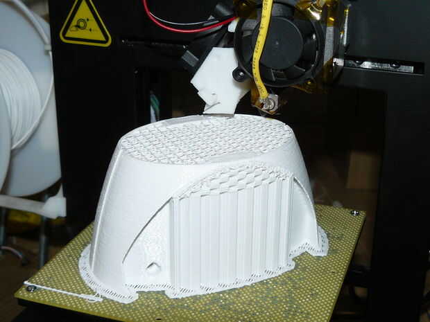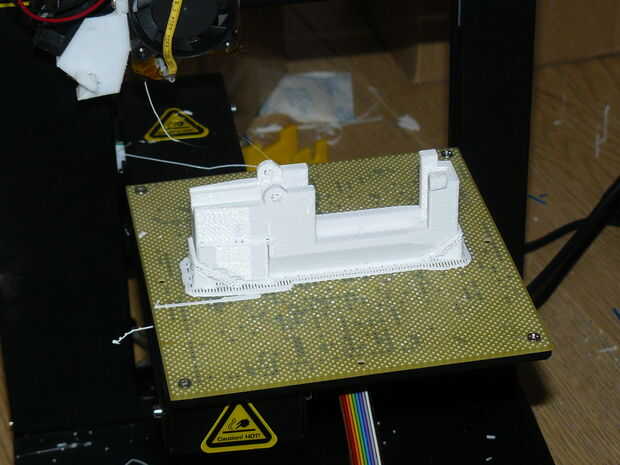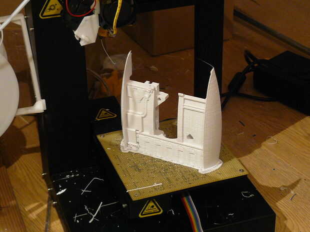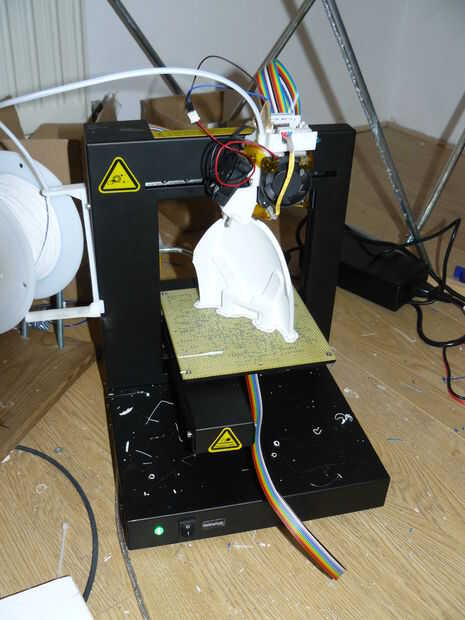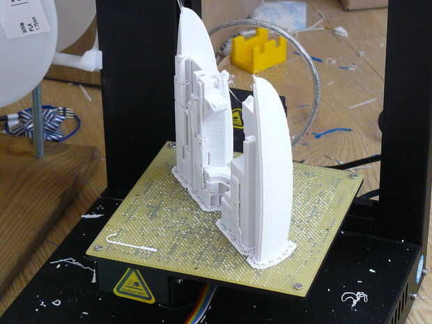 El siguiente paso es comenzar la impresión. Para esto es necesario (no va nunca esperaba...) una impresora 3D. Ahora lo no cada impresora. Tomar gran cuidado para cosas de diseño que requieren como poco apoyo como sea posible, pero en algunos casos dividir el diseño en pedazos aún más es demasiado apuro adicional. De la torre necesita una impresora 3D de al menos 120 x 120 x 120 mm (aproximadamente 5 "x 5" x 5 ") que está cómodo con material de apoyo. Usé mi impresora 3D Plus hasta que gané el año pasado en el concurso de UP2013. Yo ha me sirvio de mucho el año pasado.